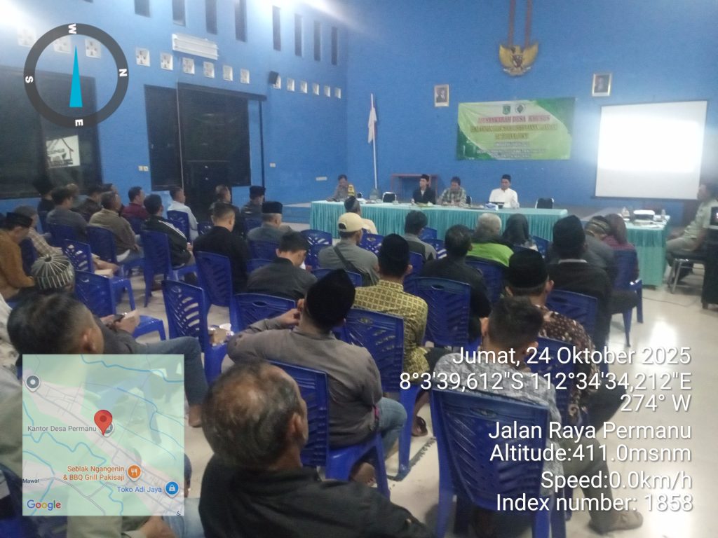 MALANG (Pakisaji)–Pemerintah Desa Permanu bersama Badan Permusyawaratan Desa (BPD) menggelar Musyawarah Desa (Musdes) Tematik Program Ketahanan Pangan Dana Desa Tahun 2025 di Gedung Serbaguna Sundiwongso, Desa Permanu, Jum’at (24/10/2025).